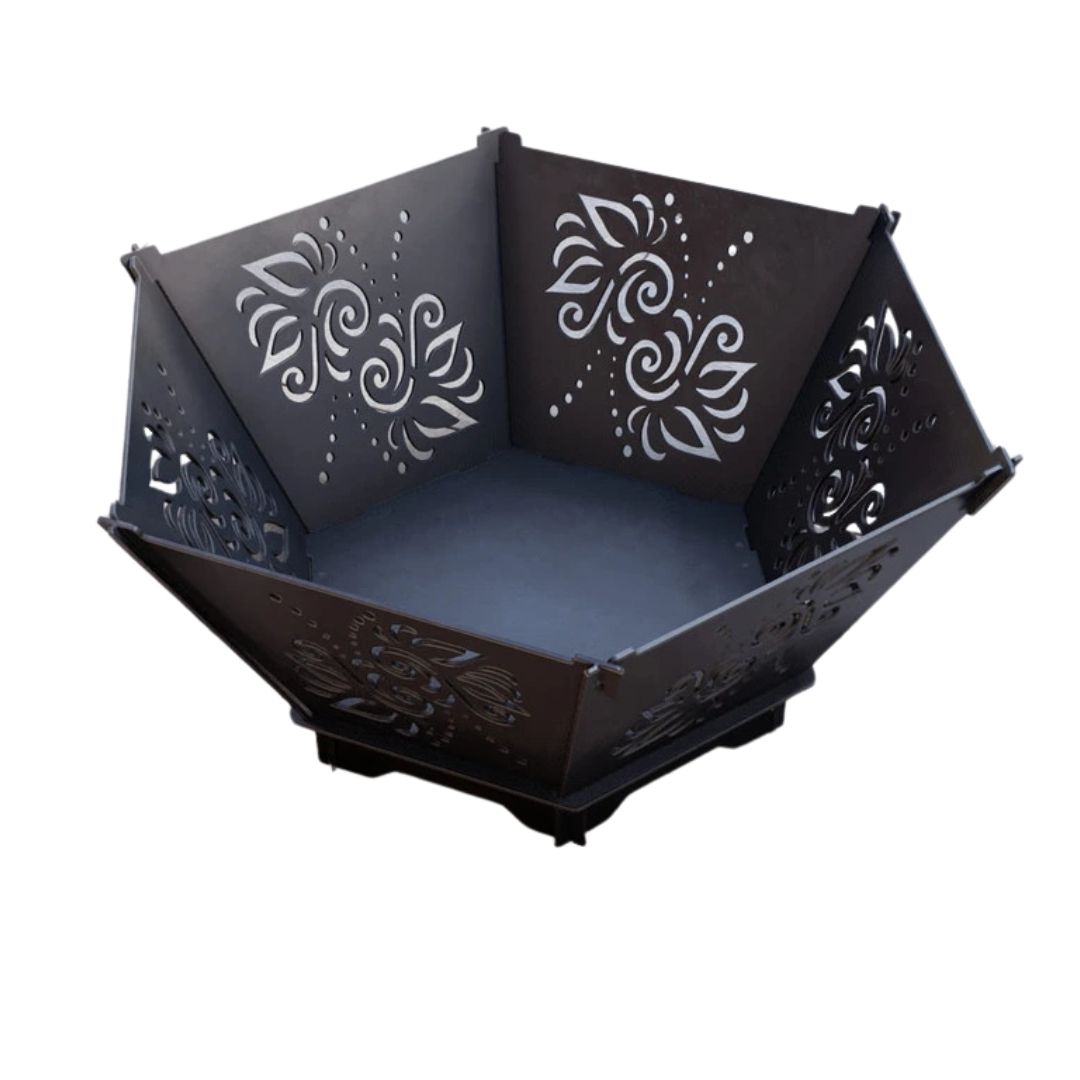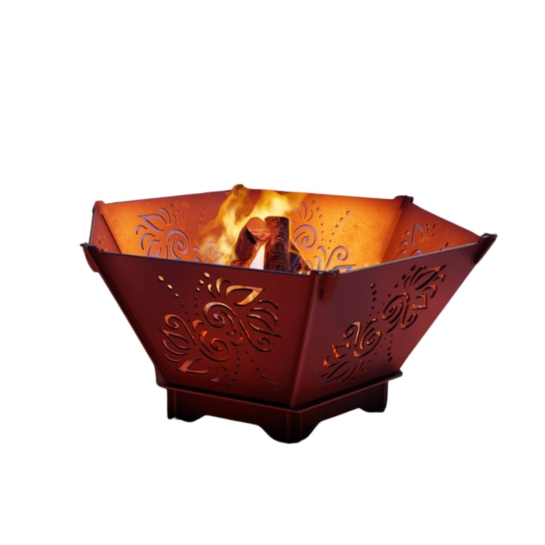 Чаша для вогнища Carino шестигранна V3 — розбірна модель із функцією гриля, що підходить як для створення атмосферного вогнища, так і для приготування страв на відкритому вогні. Конструкція з решіткою дозволяє зручно готувати м’ясо, овочі та інші продукти, а форма забезпечує рівномірний розподіл жару. Метал товщиною 3 мм гарантує міцність і стабільність при інтенсивному використанні.