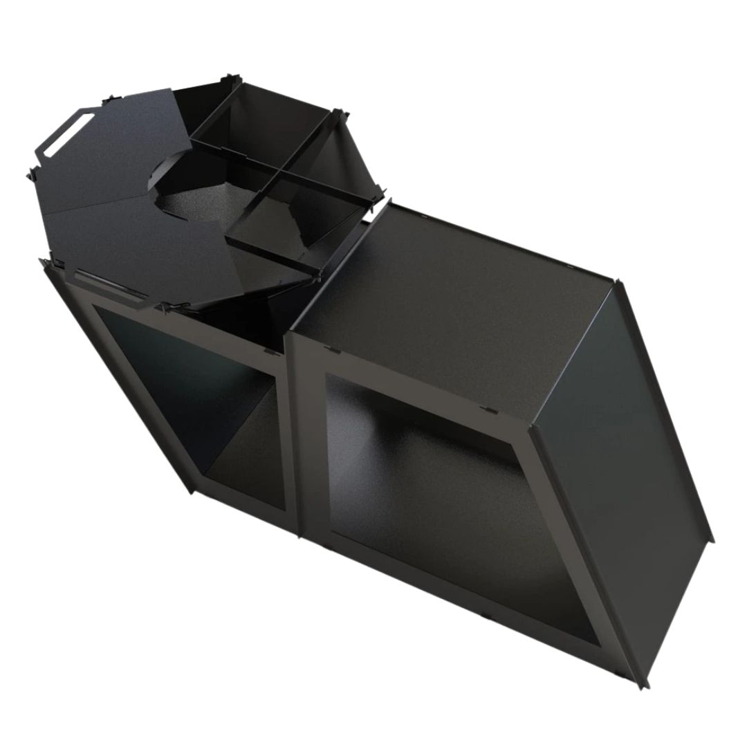 Мангал-гриль Carino Delux — розбірна модель преміального формату з великою робочою зоною та додатковими елементами для зручного приготування. Конструкція дозволяє організувати повноцінну зону барбекю з можливістю одночасного приготування різних страв. Метал товщиною 3 мм забезпечує стабільність, витримує високі температури та підходить для інтенсивного використання.