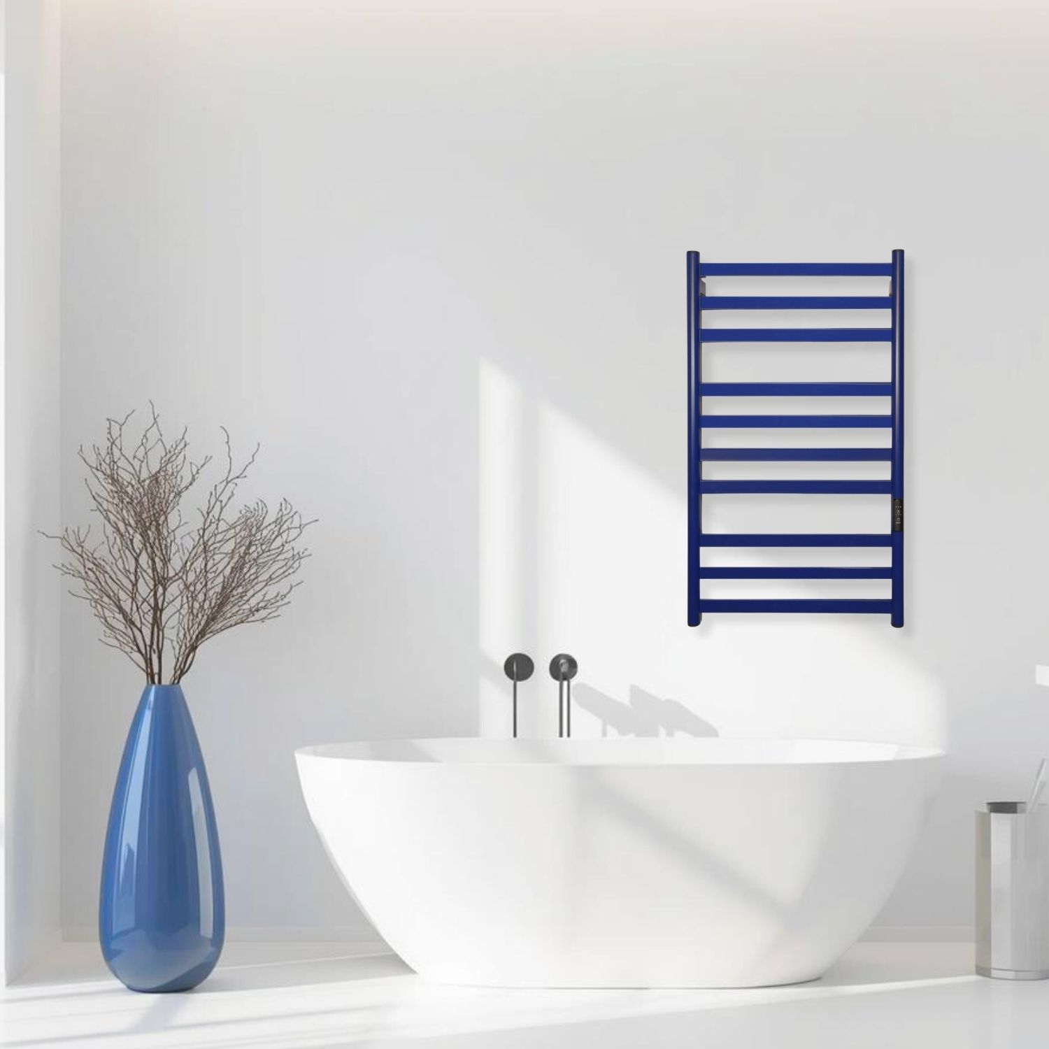 Конструкция полотенцесушителя состоит из горизонтальных ребер и вертикальных круглых стоек, что формирует прочную и надежную конструкцию и обеспечивает удобное размещение полотенец. Степень защиты IP44 позволяет безопасно использовать устройство в ванной комнате. Длина сетевого кабеля составляет 1,2 м.