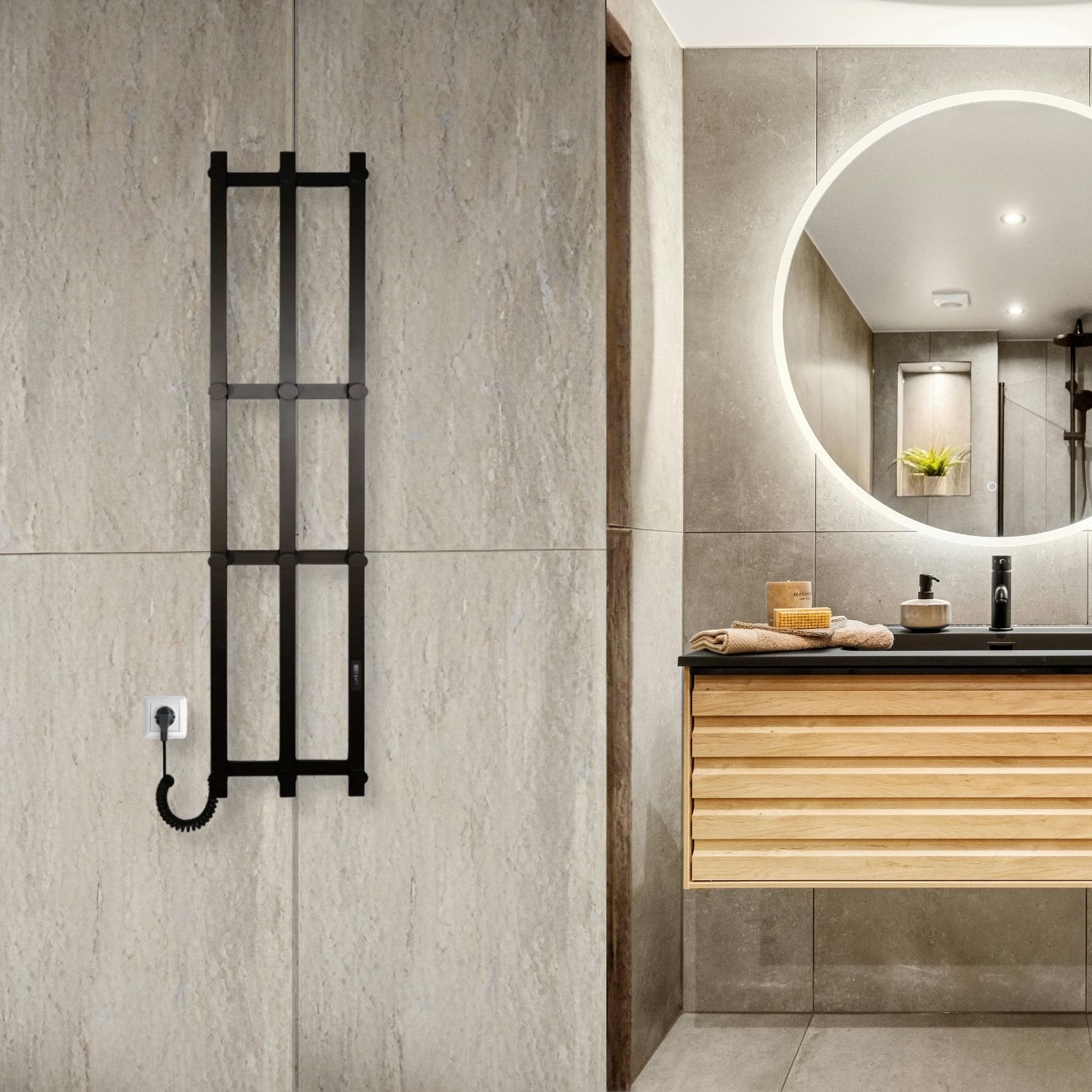 Для зручності користувача передбачене подвійне підключення живлення (з лівого або правого боку), а також комплект прихованого монтажу, що дозволяє гармонійно інтегрувати сушарку у будь-який інтер’єр.