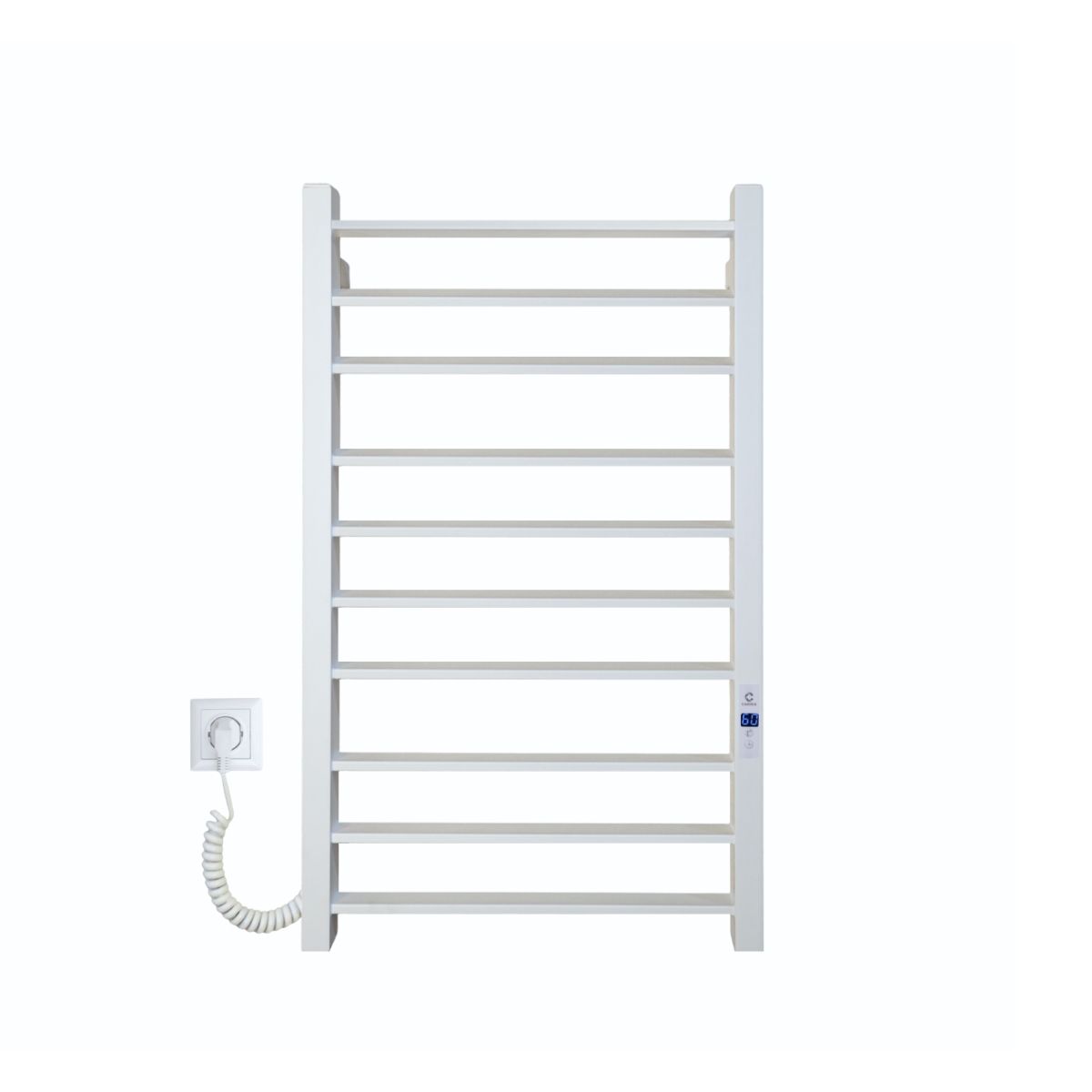 Конструкція рушникосушарки складається з 10 ребер, що створює зручну площу для сушіння рушників та текстилю. Ступінь захисту IP44 дозволяє безпечно використовувати пристрій у ванній кімнаті. Довжина мережевого кабелю становить 1,2 м.