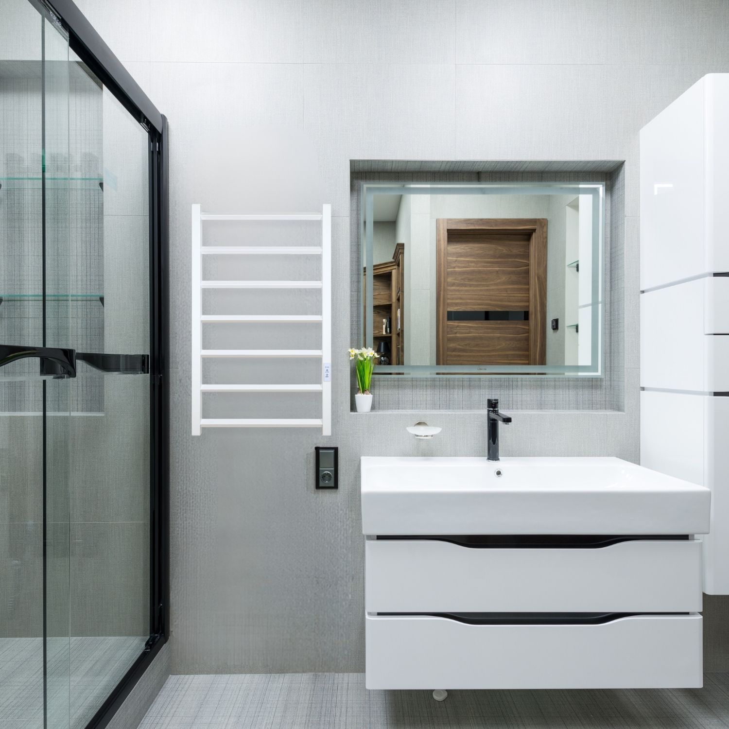 Для зручності користувача передбачене подвійне підключення живлення (з лівого або правого боку), а також комплект прихованого монтажу, що дозволяє гармонійно інтегрувати сушарку у будь-який інтер’єр.