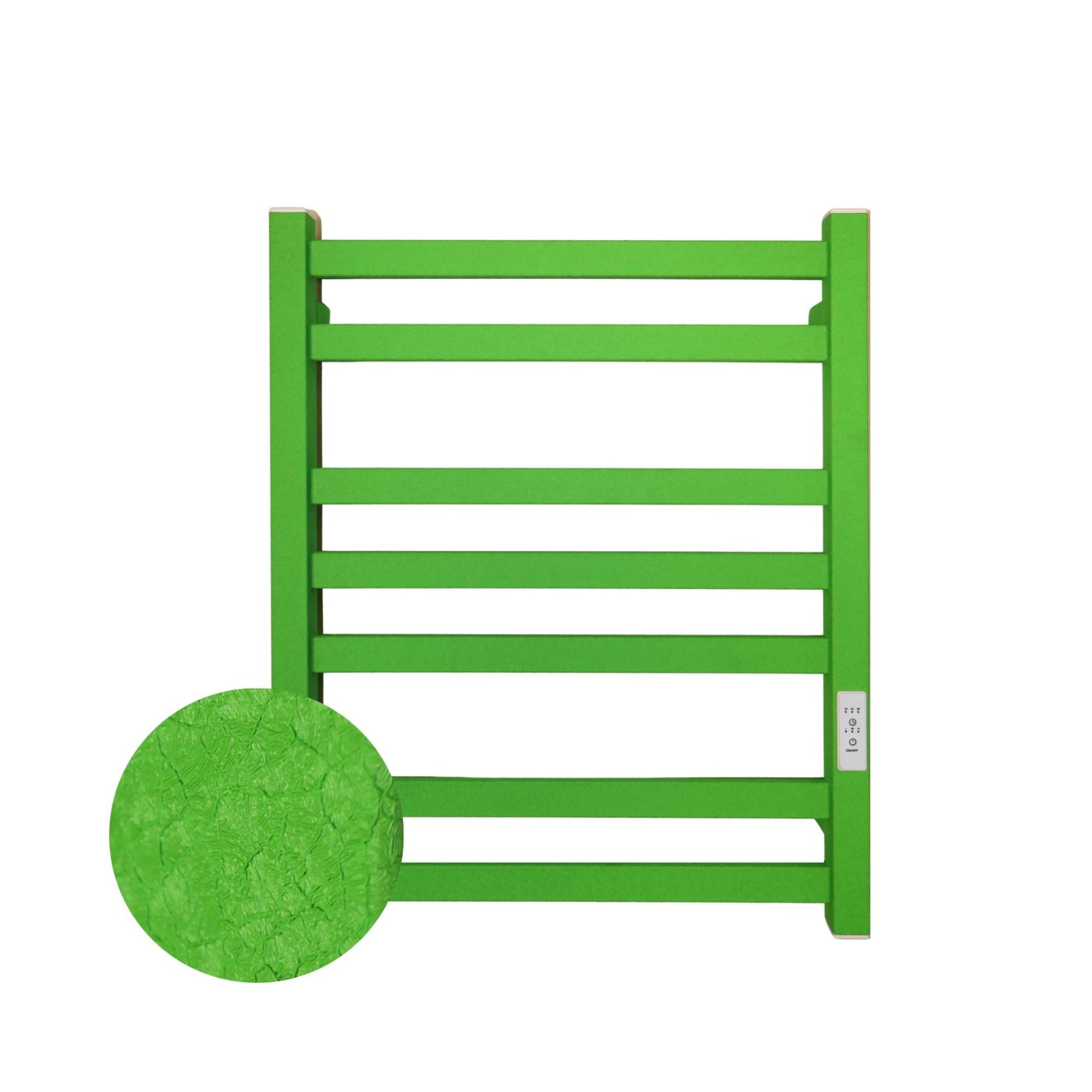 Виготовлена з вуглецевої сталі та вкрита порошковим покриттям, стійким до вологи та механічних пошкоджень. Доступна у кольорах: чорний мат, чорний глянець, білий мат, білий глянець, зелений крокодил.