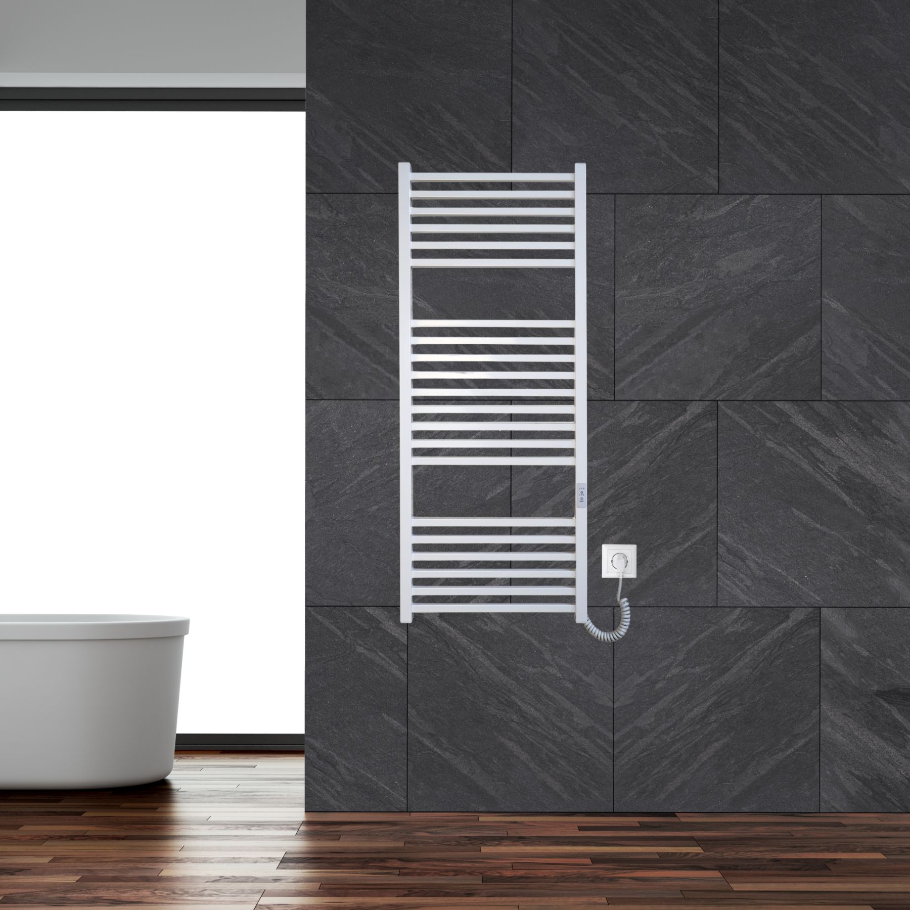 Для зручності користувача передбачене подвійне підключення живлення (з лівого або правого боку), а також комплект прихованого монтажу, що дозволяє гармонійно інтегрувати сушарку у будь-який інтер’єр.