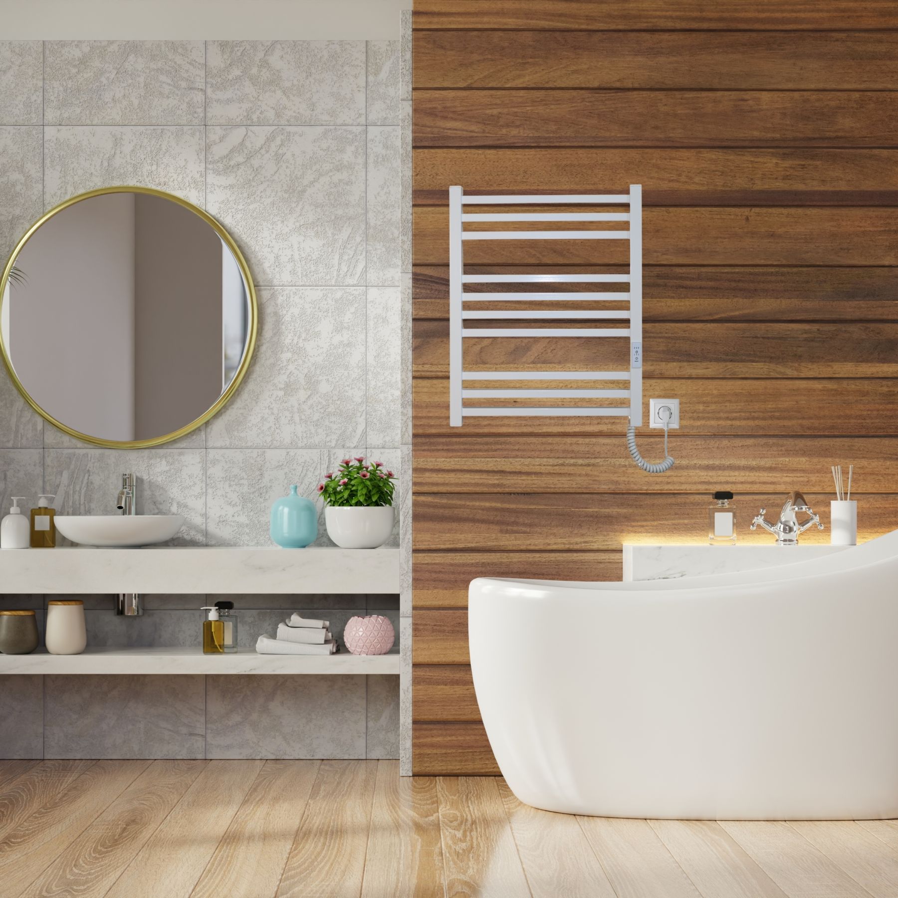 Для зручності користувача передбачене подвійне підключення живлення (з лівого або правого боку), а також комплект прихованого монтажу, що дозволяє гармонійно інтегрувати сушарку у будь-який інтер’єр.