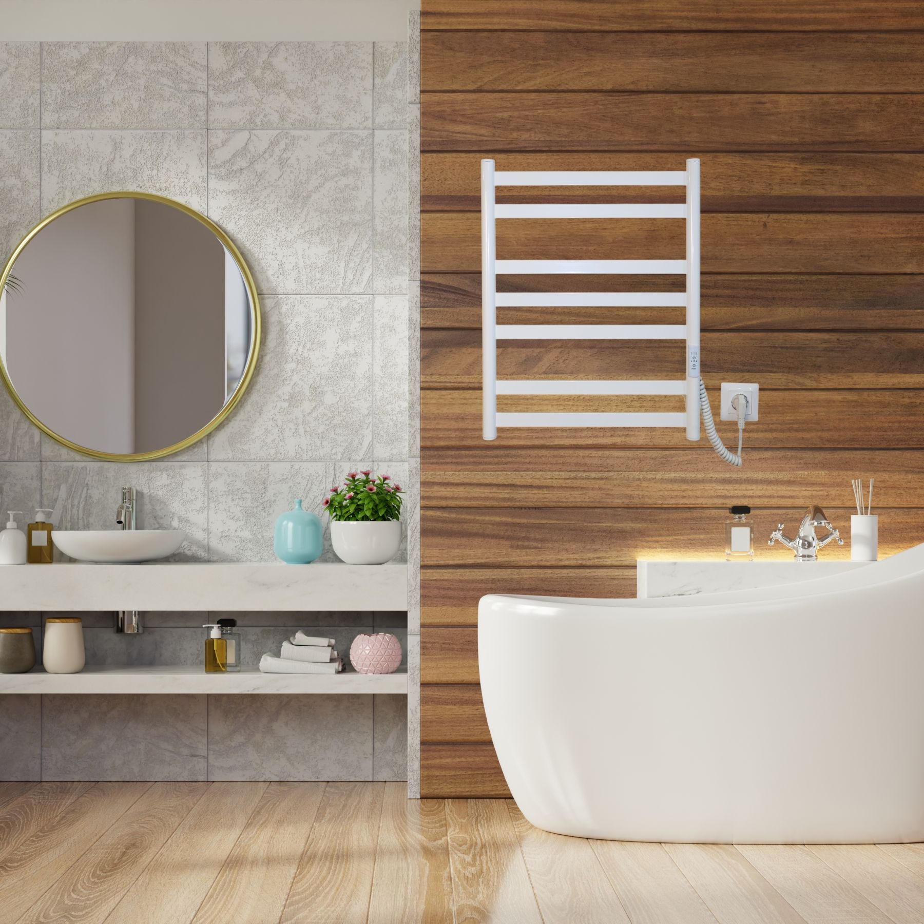 Для зручності користувача передбачене подвійне підключення живлення (з лівого або правого боку), а також комплект прихованого монтажу, що дозволяє гармонійно інтегрувати сушарку у будь-який інтер’єр.